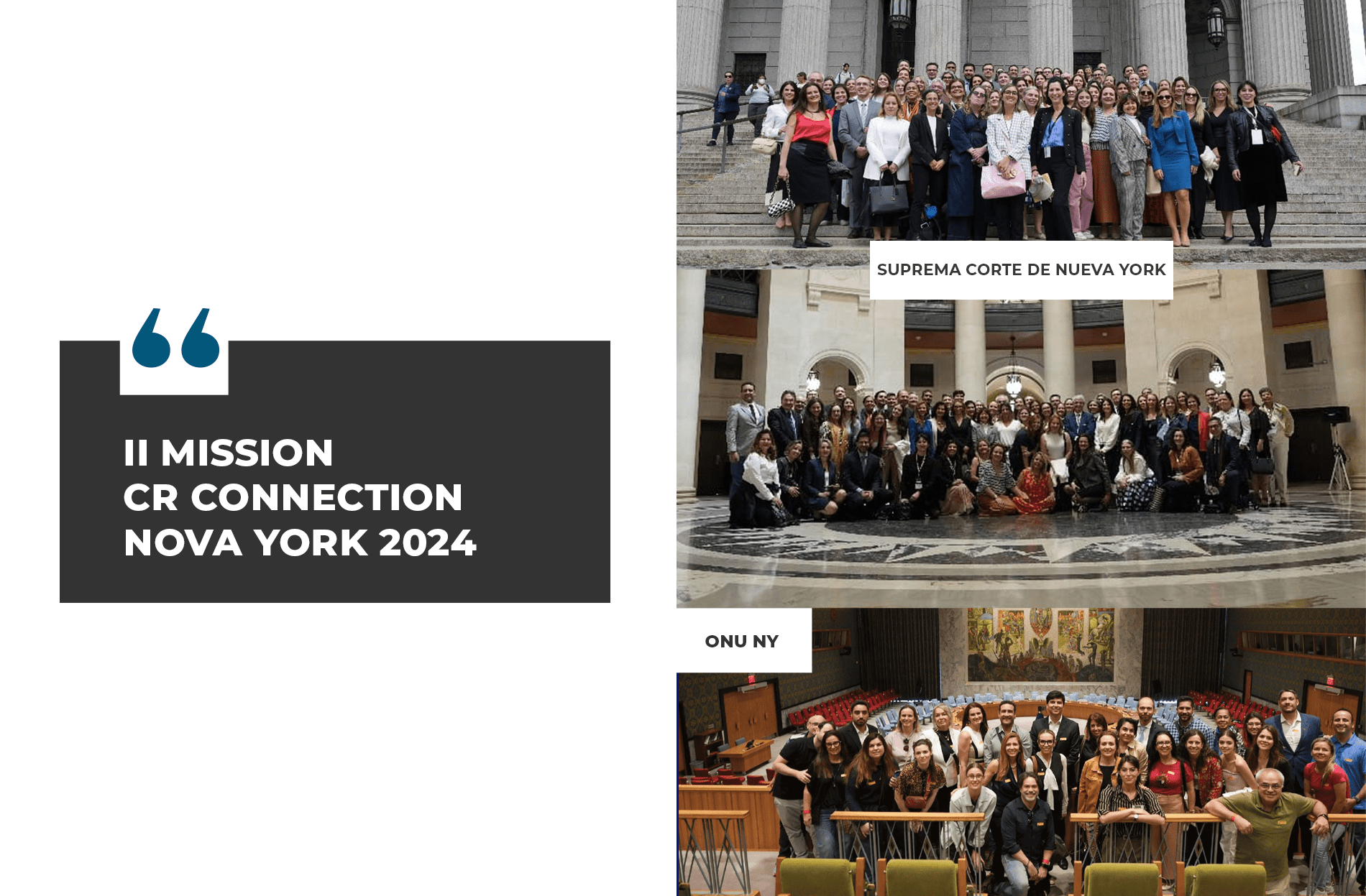 • Participei, em novembro/2022, da CR Connection NYC Mission. Foi uma experiência fantástica, com a oportunidade de manter contato com diversos protagonistas e conhecer instituições de importância mundial, que buscam métodos pacíficos para a solução de conflitos.