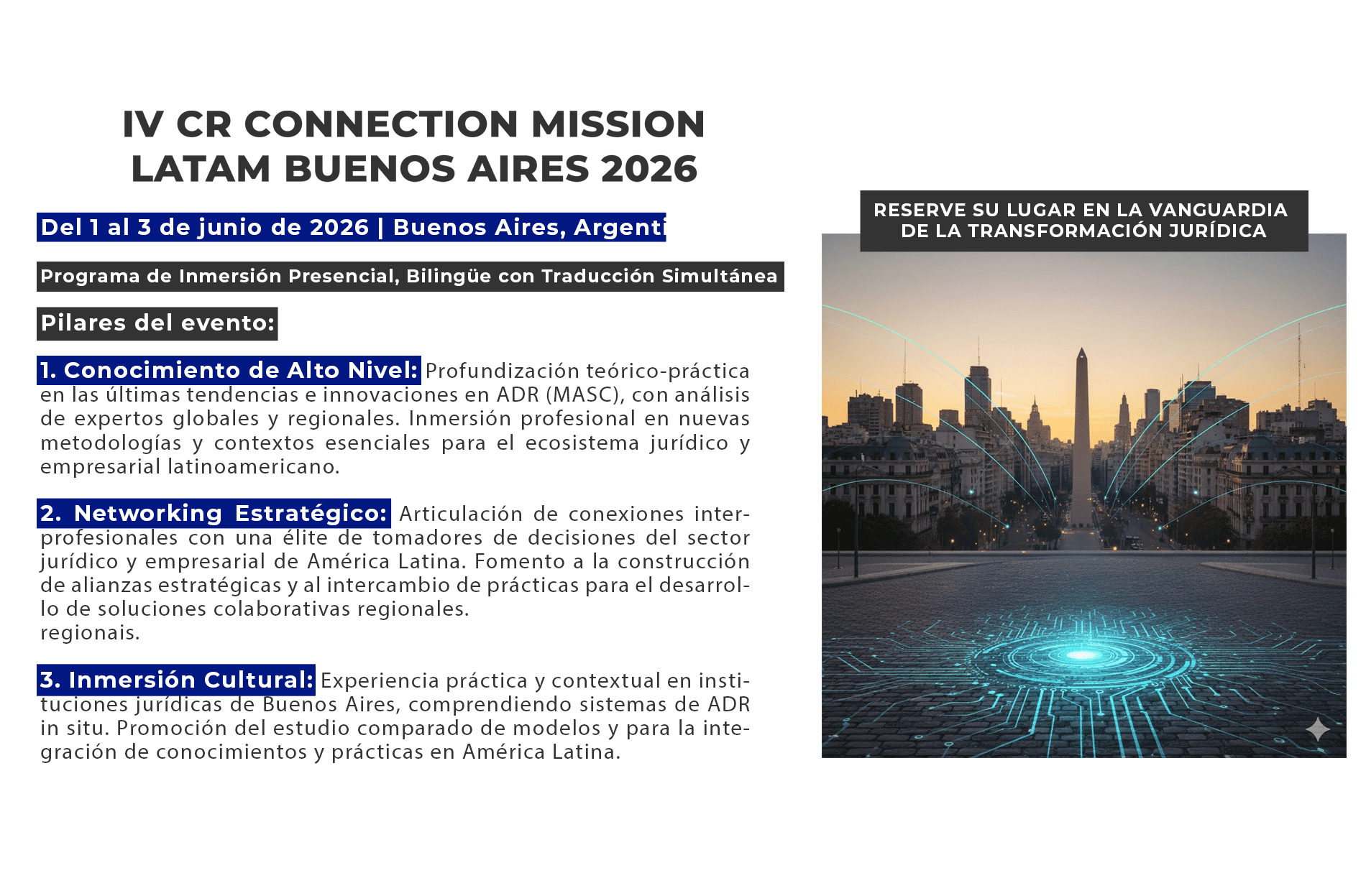 La CR Connection posee un historial de excelencia, consolidado por el éxito de misiones anteriores (Nueva York 2022 y 2024, París 2025), y el evento es destacado como el más prominente de América Latina en el campo de la resolución de conflictos.