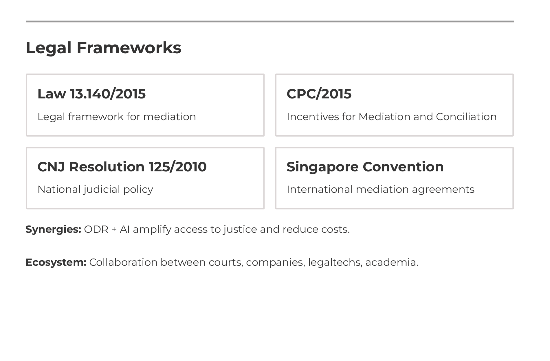 Promote the sharing of experiences and innovative ADR practices between Brazil and France, highlighting success cases and approaches that can be adapted and implemented in both countries.